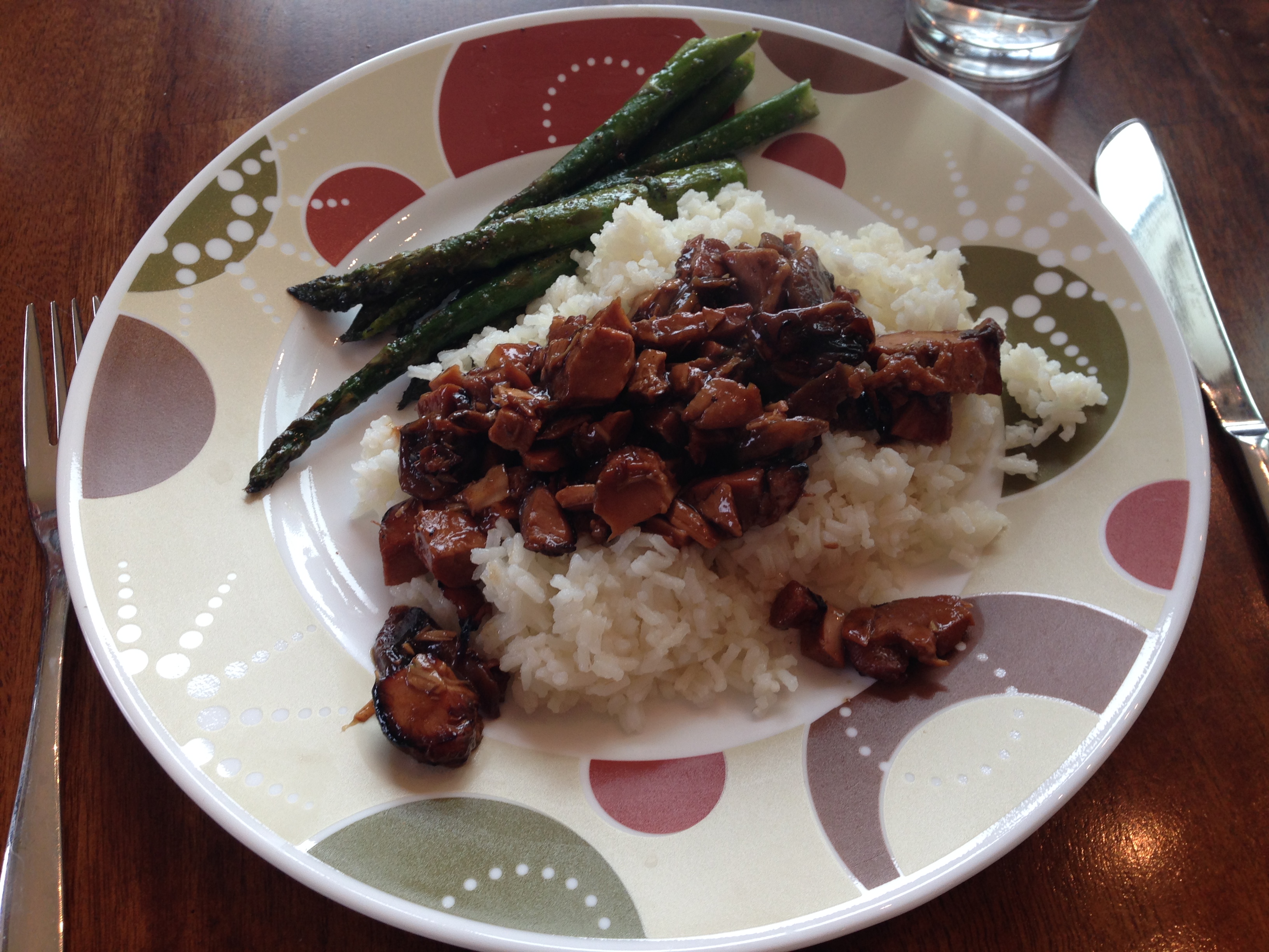 When presented with my version of a roast bird, (Teriyaki Chicken with Rice and Asparagus), he complained loudly about the gross things I forced him to eat.